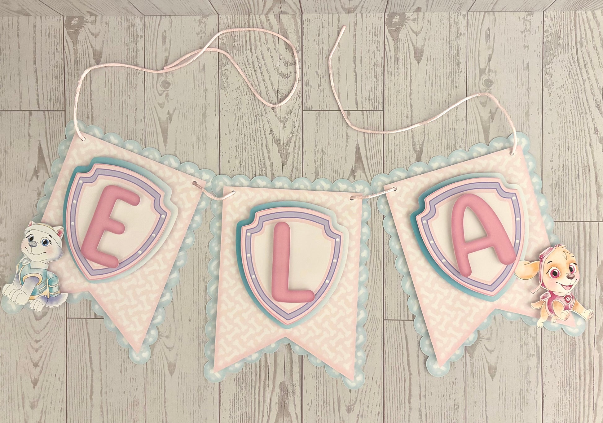 Banner personalizado con el tema, nombre, edad y colores de preferencia.