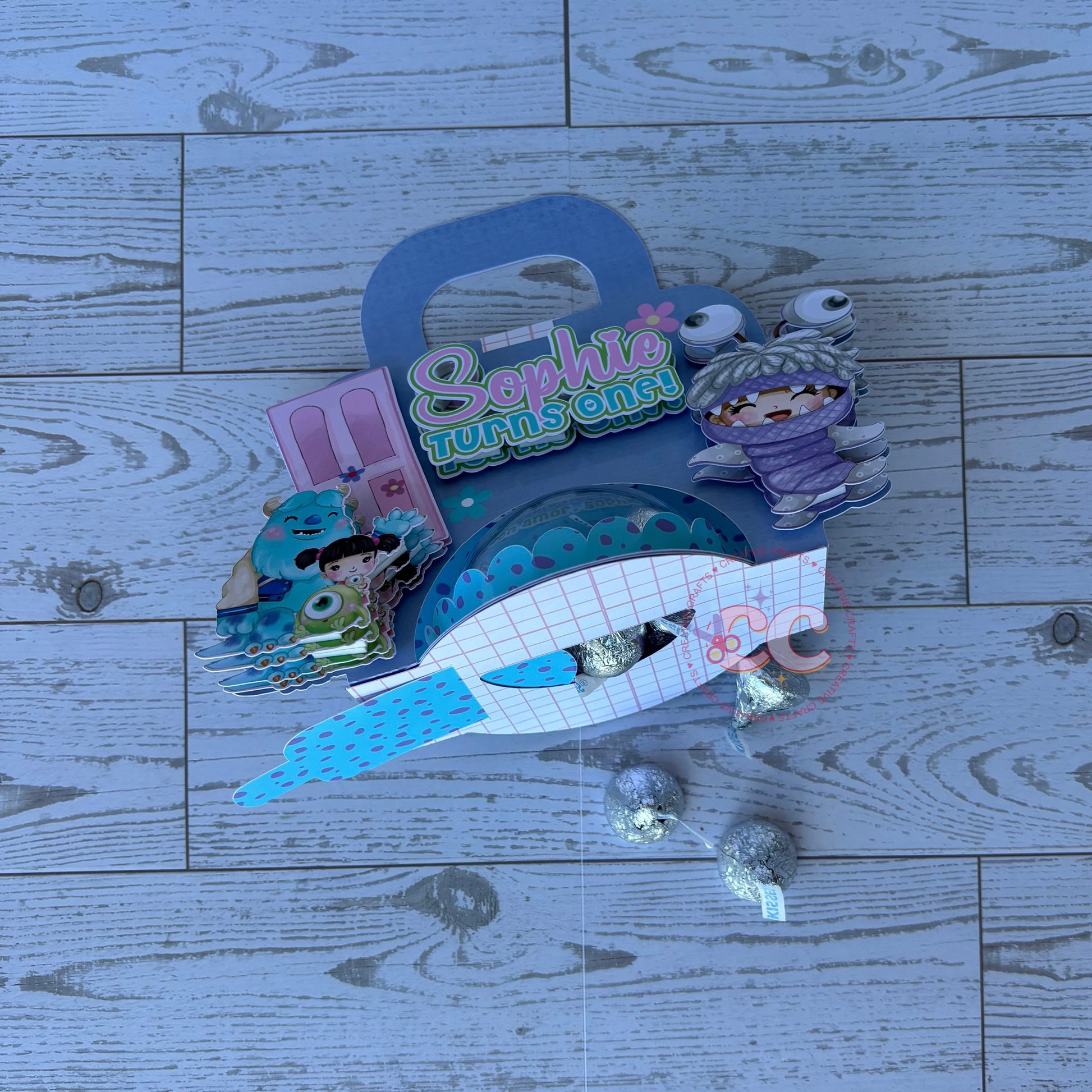 Esta carterita con esfera es perfecta para rellenar con chocolates como Kisses, Rolos, M&M's y más. Tiene espacio para 12 Kisses. Se puede personalizar con el tema, el nombre, la edad y los colores que prefieras.