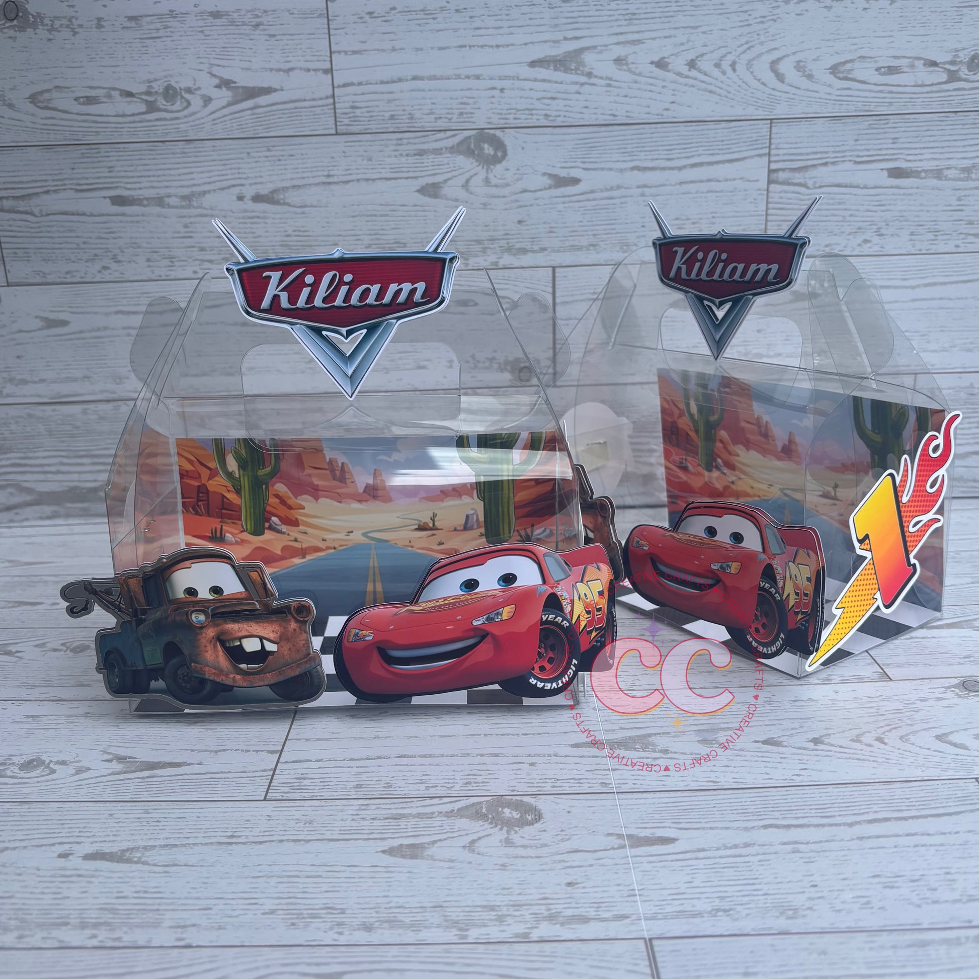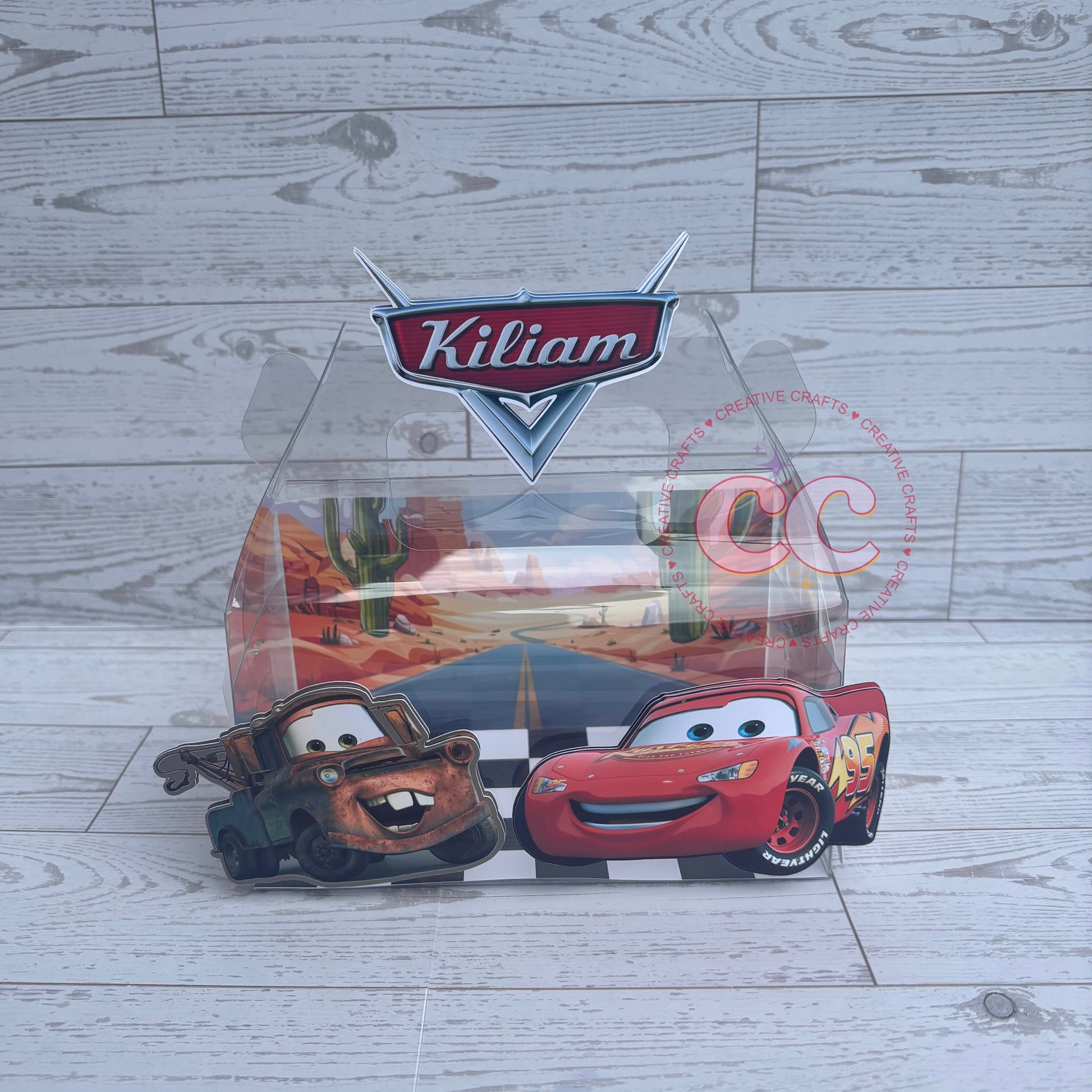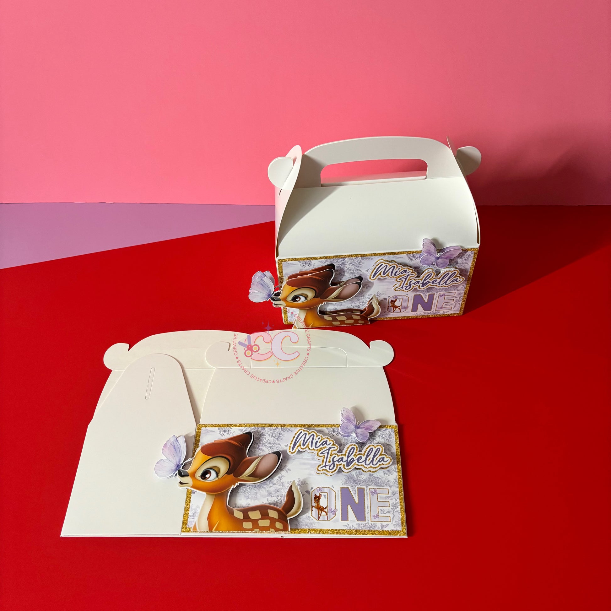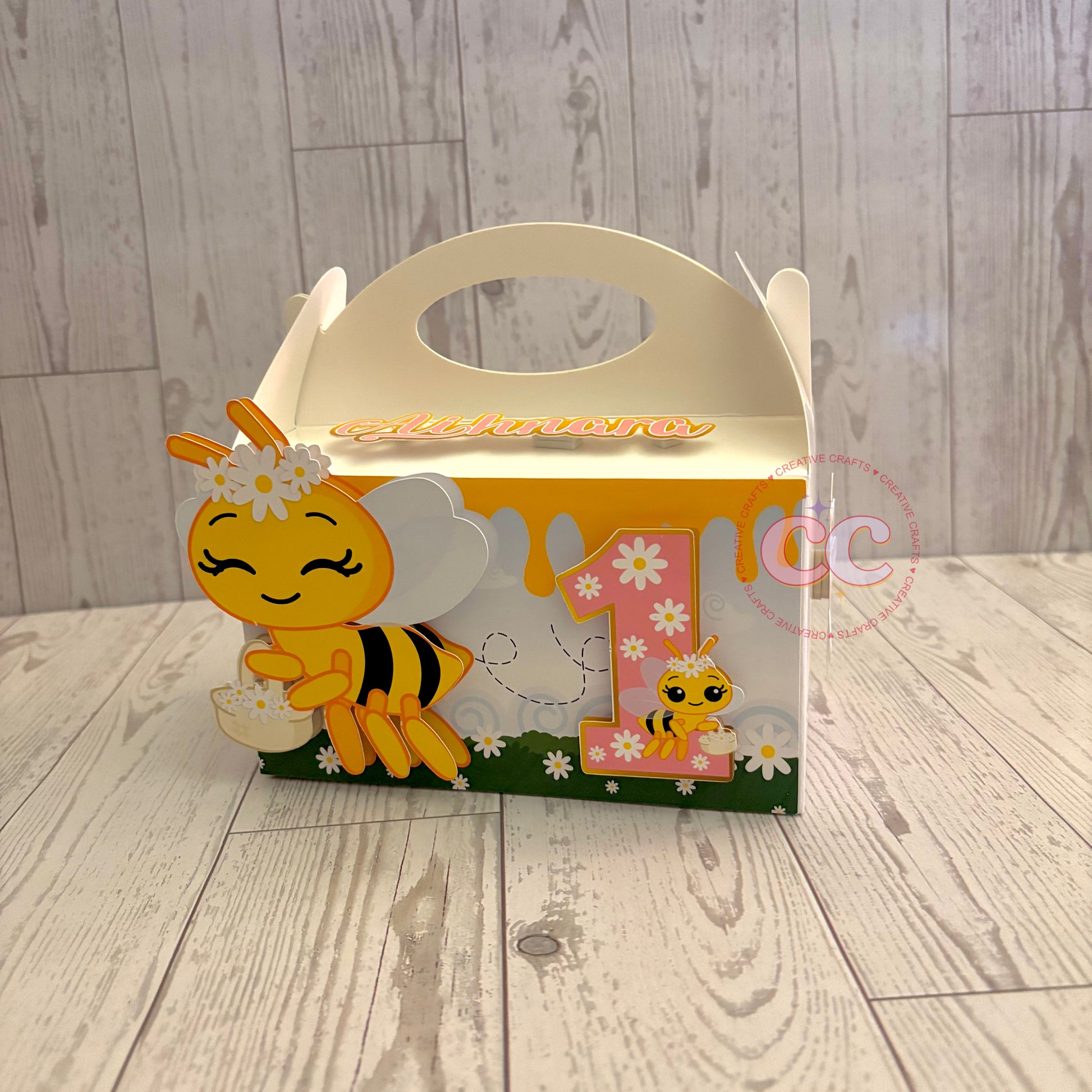 Caja color blanca con la parte delantera 100% personalizado con la temática de la fiesta, que incluye nombre, edad y colores. ESTA CAJITA TIENE EFECTO 3D!