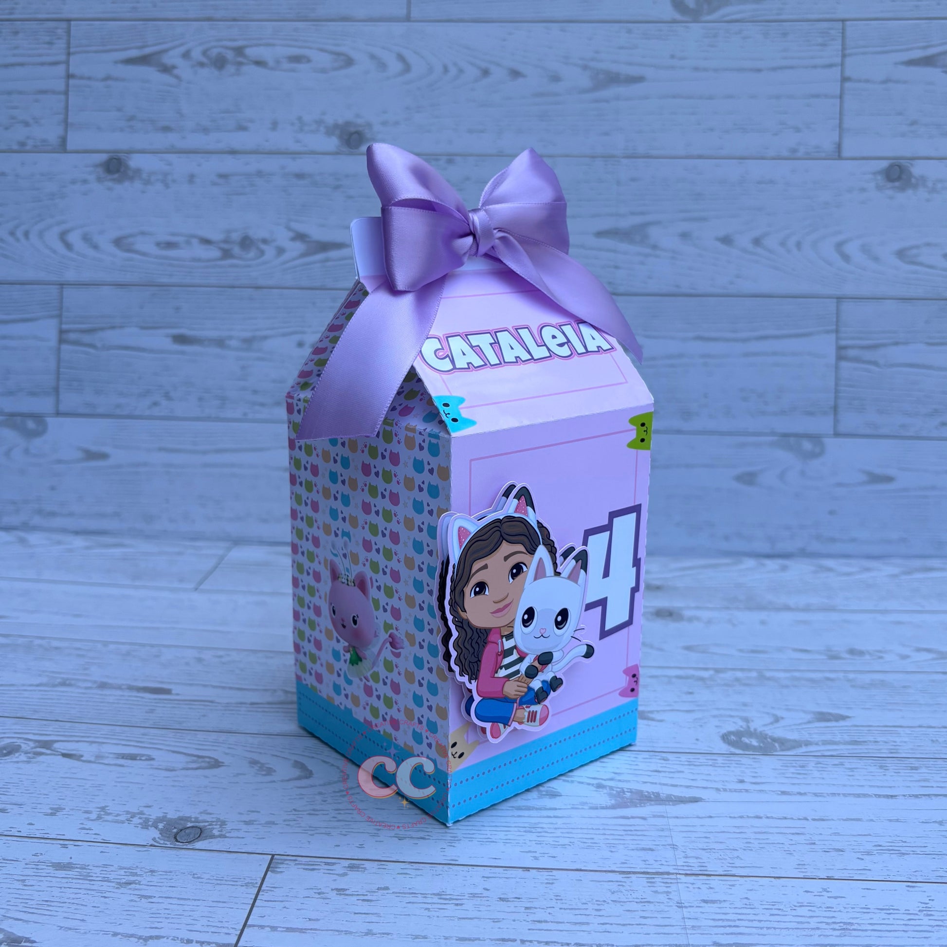 Estas hermosas cajas estilo cartón de leche son perfectas para llenarlas de dulces y decorar tu fiesta. Puedes pedirlas con o sin lazo.