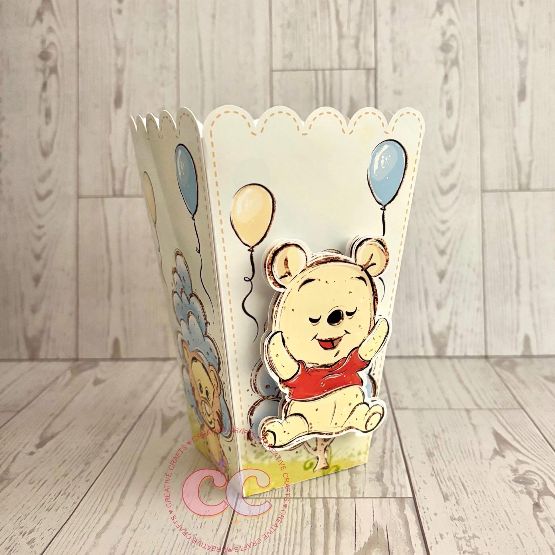Cajas de popcorn 100% personalizadas con la temática de la fiesta, que incluye nombre, edad y colores.