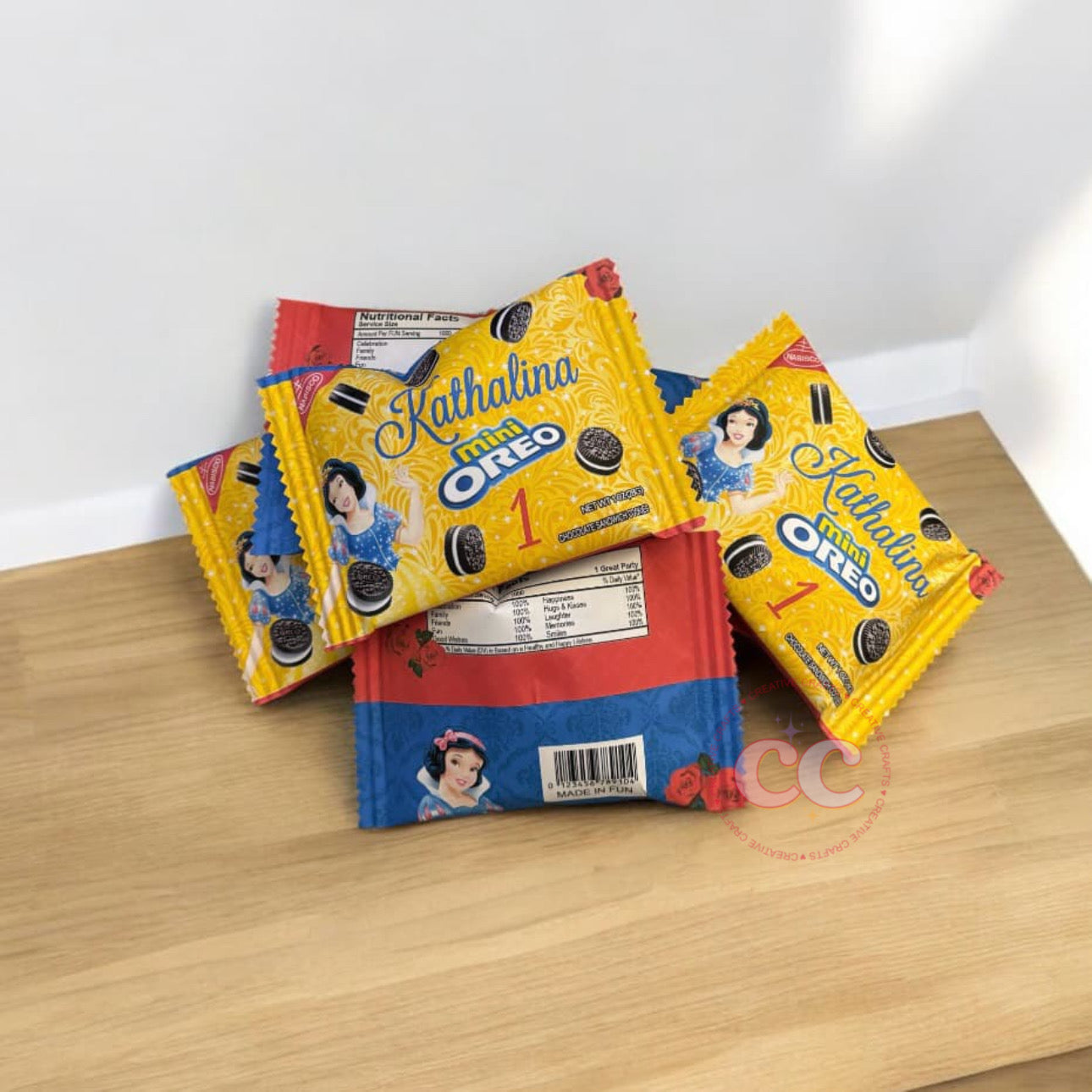 Reempaque de oreos 100% personalizadas con la temática de la fiesta, que incluye nombre, edad y colores. INLUYE LAS OREOS QUE VIENEN EN UN PAQUETE SELLADO.